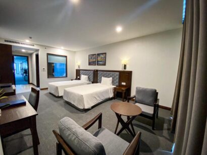 Tại khách sạn, tất cả các phòng đều có điều hòa, khu vực ghế ngồi, TV màn hình phẳng có truyền hình cáp, két an toàn, phòng tắm riêng, vòi xịt/chậu rửa vệ sinh, đồ vệ sinh cá nhân miễn phí và máy sấy tóc. Tại Peace Hotel Hạ Long, phòng nào cũng có ga trải giường và khăn tắm.
