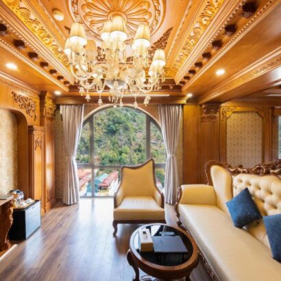 Khách sạn sở hữu 80 phòng nghỉ với nhiều hạng phòng từ Deluxe đến Executive Suite, một số được dát vàng 24K, lát gỗ gõ đỏ 100 năm tuổi – tạo nên không gian vừa ấm cúng vừa quý phái.