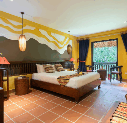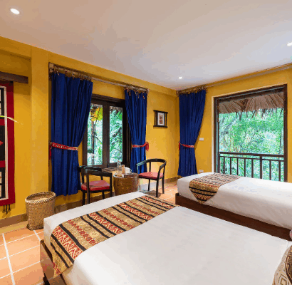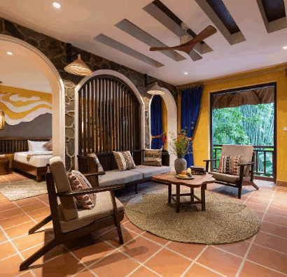 Ngay khi đặt chân đến đây, bạn sẽ cảm nhận được dấu ấn văn hóa của người Dao trong không gian được tạo nên từ các vật liệu tự nhiên. Tại Panhou, tiện nghi không chỉ là sự đầy đủ mà còn là tính thân thiện với môi trường.