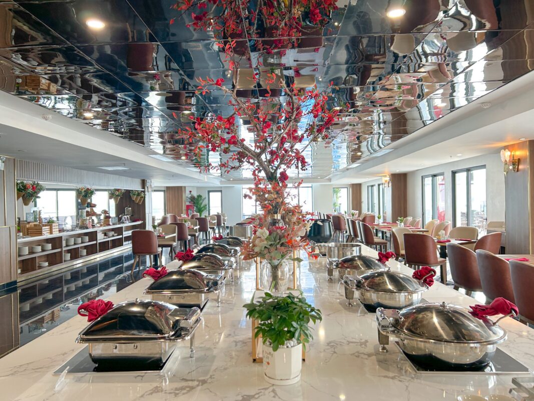 Tại nhà hàng du khách có thể ngắm nhìn toàn cảnh vịnh Hạ Long hùng vĩ từ bất cứ vị trí nào. Hãy bắt đầu một ngày mới tràn đầy năng lượng với thực đơn bữa sáng phong phú, khám phá sự đa dạng về ẩm thực bốn phương, nhà hàng Blue Lagoon tại tầng 6 của khách sạn luôn chào đón và sẵn sàng phục vụ Quý khách.