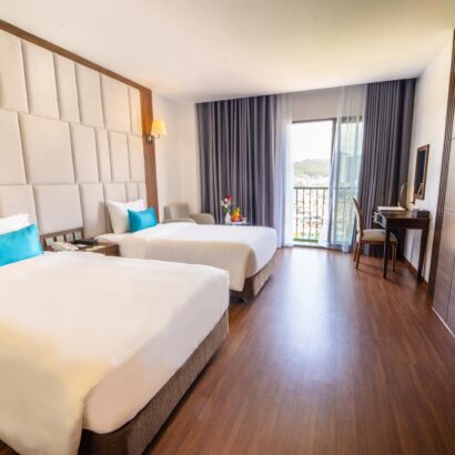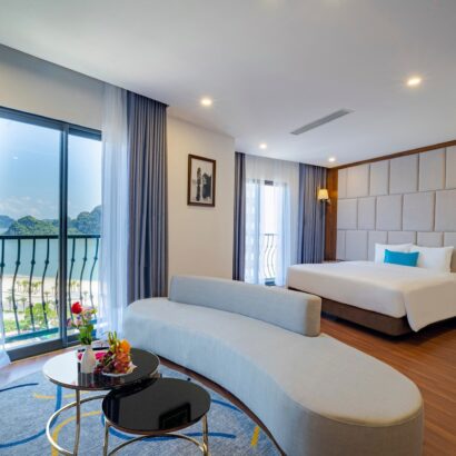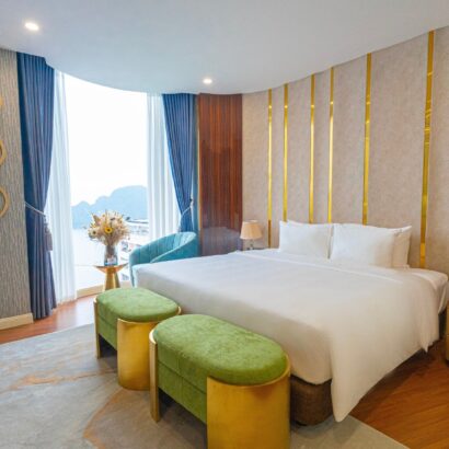 Phòng Deluxe mang đến một không gian riêng tư và sang trọng để quý khách có thể thư giãn sau một ngày dài khám phá Vịnh Hạ Long. Thiết kế thanh lịch, trang nhã, hệ thống nội thất gỗ tinh tế cùng những đường nét …