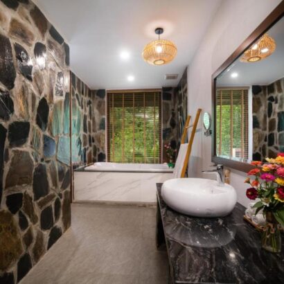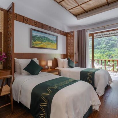 Tại khách sạn, tất cả các phòng đều có điều hòa, bàn làm việc, sân hiên với view núi, phòng tắm riêng, TV màn hình phẳng, ga trải giường và khăn tắm. Tất cả các căn đều có tủ quần áo và ấm đun nước để khách sử dụng. Mai Chau Mountain View Resort có sân chơi trẻ em.