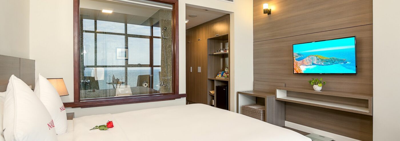 Bên khung cửa kính như ôm trọn cả bờ đại dương, Deluxe Ocean được mọi du khách yêu thích khi ghé thăm The Nalod Da Nang khi không chỉ có thể ngắm bình minh vào buổi sáng sớm mà còn khiến bạn như đắm vào thiên nhiên với khung cảnh bán đảo Sơn Trà hùng vĩ. Mọi giây phút nghỉ ngơi ở hạng phòng này đều trở nên đáng giá.