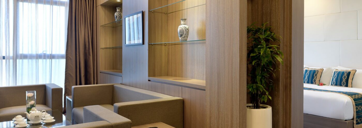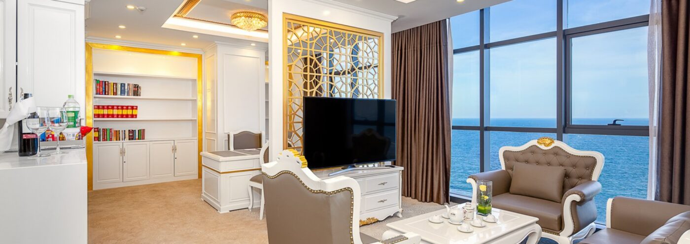 Căn phòng President Suite với sự tiện nghi, đầy đủ các trang thiết bị hiện đại của phòng khách, gian bếp đa chức năng, phòng làm việc và phòng ngủ – mang đến cảm giác như ở tại chính căn nhà của mình đến cho quý khách khi đặt chân đến The Nalod Da Nang.
