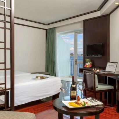 Novotel Ha Long Bay Hotel cung cấp chỗ nghỉ đạt chuẩn 4 sao tại trung tâm của phường Bãi Cháy. Khách sạn có tầm nhìn ra Di Sản Thế Giới UNESCO – Vịnh Hạ Long, hồ bơi với sàn ngoài trời, nhà hàng và chỗ đỗ xe riêng miễn phí trong khuôn viên. Với WiFi miễn phí, mỗi phòng tại đây được trang trí trang nhã và có nội thất hiện đại cùng những tiện nghi công nghệ cao.
