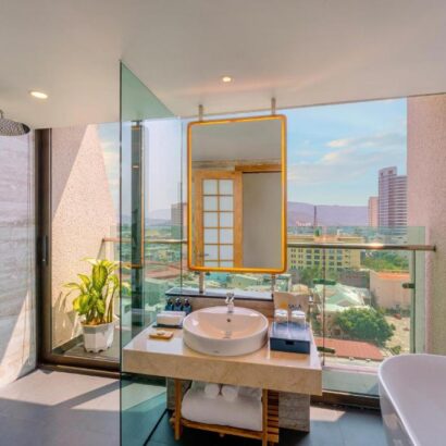 Nằm giáp biển, Sala QuyNhon Beach Hotel cung cấp chỗ nghỉ 4 sao ở Quy Nhơn, đồng thời có hồ bơi ngoài trời, trung tâm thể dục và phòng chờ chung. Ngoài dịch vụ phòng, chỗ nghỉ này còn có sân hiên. Chỗ nghỉ cung cấp lễ tân 24/24, dịch vụ đưa đón sân bay, câu lạc bộ trẻ em và Wi-Fi miễn phí ở toàn bộ chỗ nghỉ.