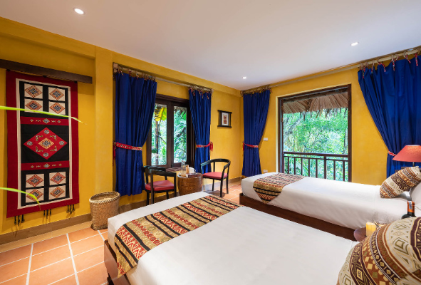 Ngay khi đặt chân đến đây, bạn sẽ cảm nhận được dấu ấn văn hóa của người Dao trong không gian được tạo nên từ các vật liệu tự nhiên. Tại Panhou, tiện nghi không chỉ là sự đầy đủ mà còn là tính thân thiện với môi trường.