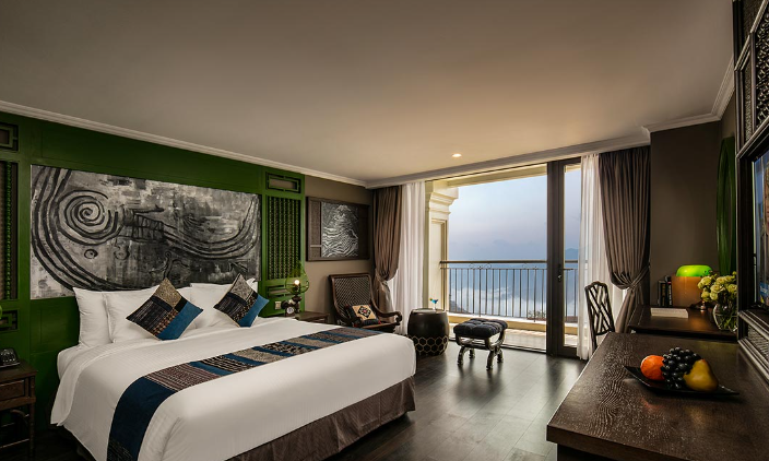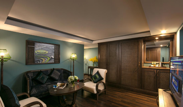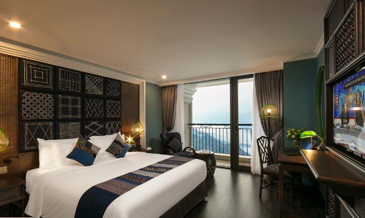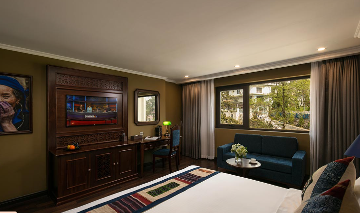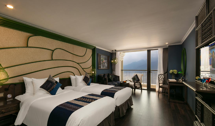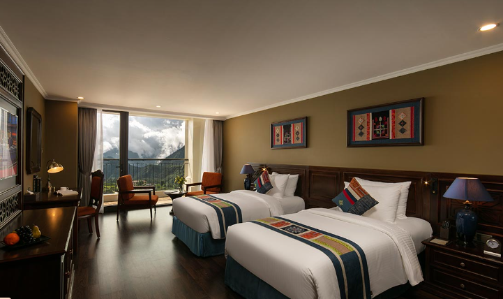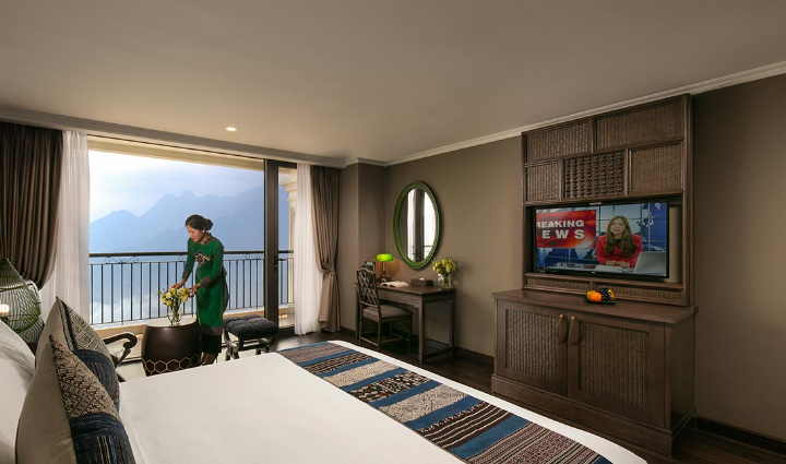 Tọa lạc trên các tầng cao và sở hữu ban công riêng thoáng đạt cùng diện tích tối thiểu 38m2, 17 phòng Premium Deluxe là 17 ốc đảo nghỉ dưỡng bình yên, nơi du khách có thể thư giãn trên chiếc giường êm ái, đắm mình trong khung cảnh nên thơ của thung lũng Mường Hoa hay thành phố Sapa ẩn hiện trong sương. Không chỉ rộng lớn và ngập tràn ánh sáng tự nhiên, phòng Premium Deluxe còn được nâng tầm sang trọng với nội thất gỗ tinh tế, trang nhã, phòng tắm lát đá cẩm thạch và những tiện nghi cao cấp.