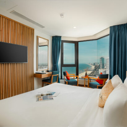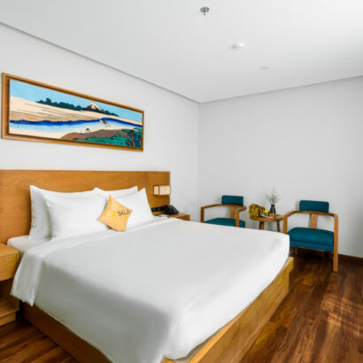 Phòng Superior Giường đôi sẽ mang một góc thành phố nằm cạnh bãi cát vàng và những cơn sóng biển dập dìu đến phòng bạn.